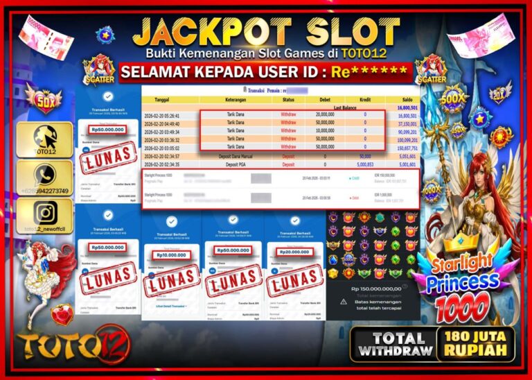 Selamat kepada Member Kami Re***** Telah Jackpot dan berhasil mendapatkan kemenangan besar pada permainan JACKPOT SLOT GAME (STARLIGHT PRINCES 1000) Dengan Kemenangan Sebesar Rp.180.000.000–. Setelah mengisi Fomulir Withdraw dengan Kurang waktu 1-2 Menit Dana sudah kami Trasnfer kepada Pemilik Userid dan dana sudah dapat di cairkan oleh pemenang. Bukti Pembayaran yang TOTO12 berikan merupakan Bukti Pembayaran…