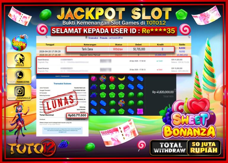 Selamat kepada Member Kami Na***** Telah Jackpot dan berhasil mendapatkan kemenangan besar pada permainan JACKPOT SLOT GAME (GATES OF OLYMPUS 1000) Dengan Kemenangan Sebesar Rp.55.000.000–. Setelah mengisi Fomulir Withdraw dengan Kurang waktu 1-2 Menit Dana sudah kami Trasnfer kepada Pemilik Userid dan dana sudah dapat di cairkan oleh pemenang. Bukti Pembayaran yang TOTO12 berikan merupakan Bukti…