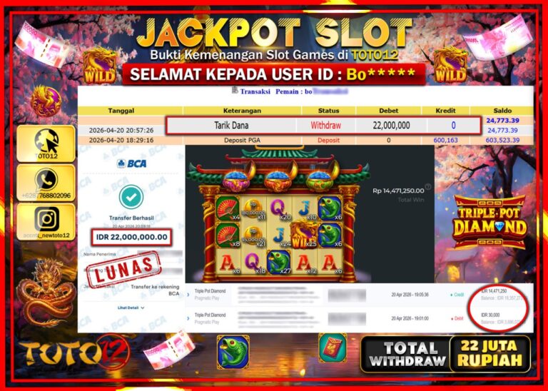 Selamat kepada Member Kami Ta***** Telah Jackpot dan berhasil mendapatkan kemenangan besar pada permainan JACKPOT SLOT GAME (MAHJONG WINS 2) Dengan Kemenangan Sebesar Rp.69.569.000–. Setelah mengisi Fomulir Withdraw dengan Kurang waktu 1-2 Menit Dana sudah kami Trasnfer kepada Pemilik Userid dan dana sudah dapat di cairkan oleh pemenang. Bukti Pembayaran yang TOTO12 berikan merupakan Bukti Pembayaran…
