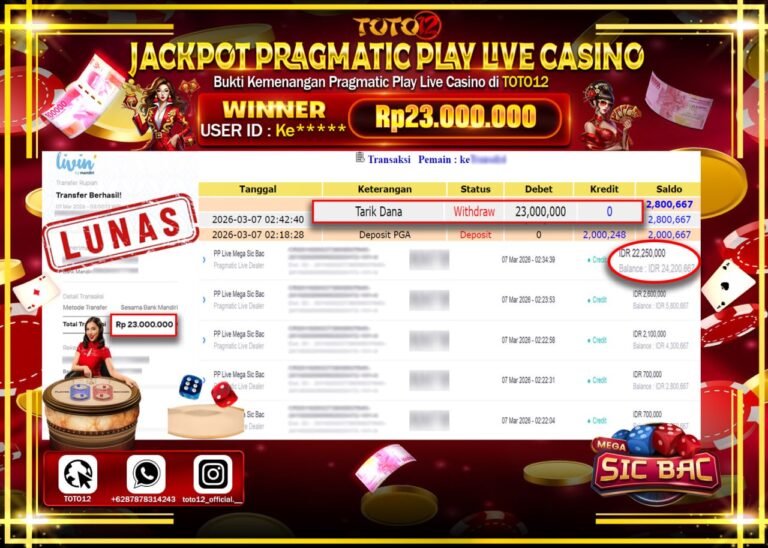 Selamat kepada Member Kami Ke****** Telah Jackpot dan berhasil mendapatkan kemenangan besar pada permainan JACKPOT PRAGMATIC PLAY LIVE GAME CASINO (PP LIVE MEGA SIC BAC) Dengan Kemenangan Sebesar Rp.23.000.000–. Setelah mengisi Fomulir Withdraw dengan Kurang waktu 1-2 Menit Dana sudah kami Trasnfer kepada Pemilik Userid dan dana sudah dapat di cairkan oleh pemenang. Bukti Pembayaran yang…