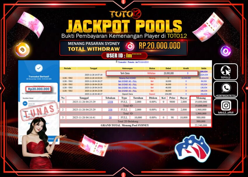 HANYA DI TOTO12 JP PASTI DI BAYAR LUNAS DAN CEPAT!!!!!! JACKPOT POOLS PASARAN (SYDNEY) Rp.20.000.000 !!!!