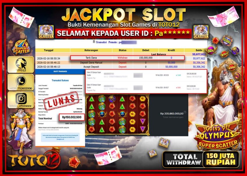 Selamat kepada Member Kami Pa******* Telah Jackpot dan berhasil mendapatkan kemenangan besar pada permainan JACKPOT SLOT GAME (GATES OF OLYMPUS SUPER SCATTER) Dengan Kemenangan Sebesar Rp.150.000.000–.