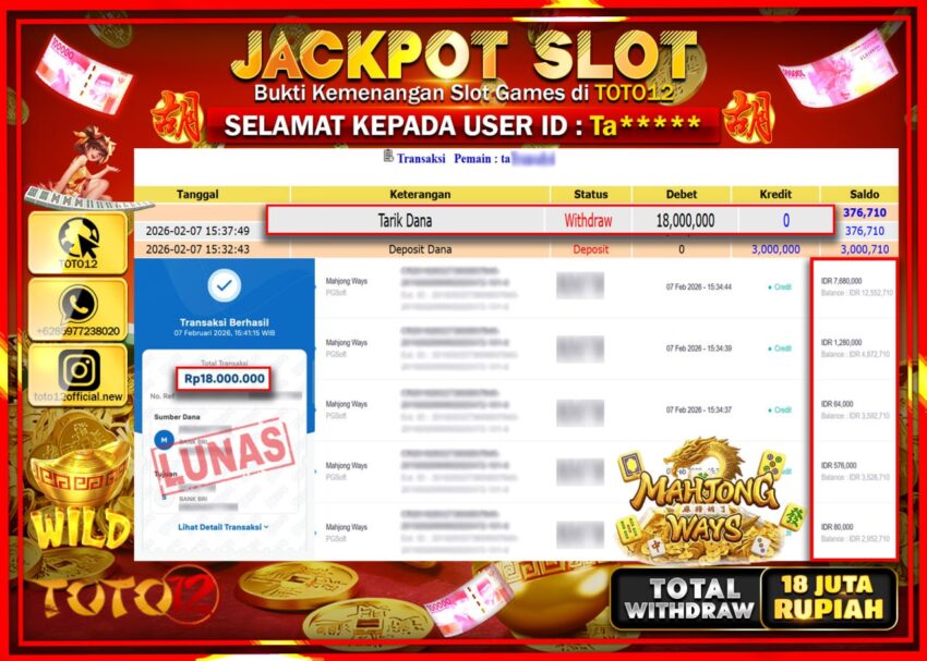 Selamat kepada Member Kami Ta***** Telah Jackpot dan berhasil mendapatkan kemenangan besar pada permainan JACKPOT SLOT GAME (MAHJONG WAYS) Dengan Kemenangan Sebesar Rp.18.000.000–.