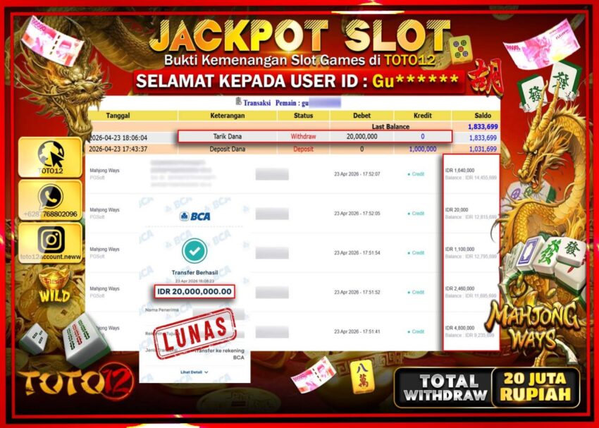 HANYA DI TOTO12 JP PASTI DI BAYAR LUNAS DAN CEPAT!!!!!! JACKPOT SLOT GAME (MAHJONG WAYS) Rp.20.000.000!!!!