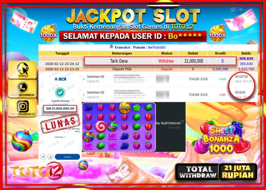 HANYA DI TOTO12 JP PASTI DI BAYAR LUNAS DAN CEPAT!!!!!! JACKPOT SLOT GAME (SWEET BONANZA 1000) Rp.21.000.000!!!!