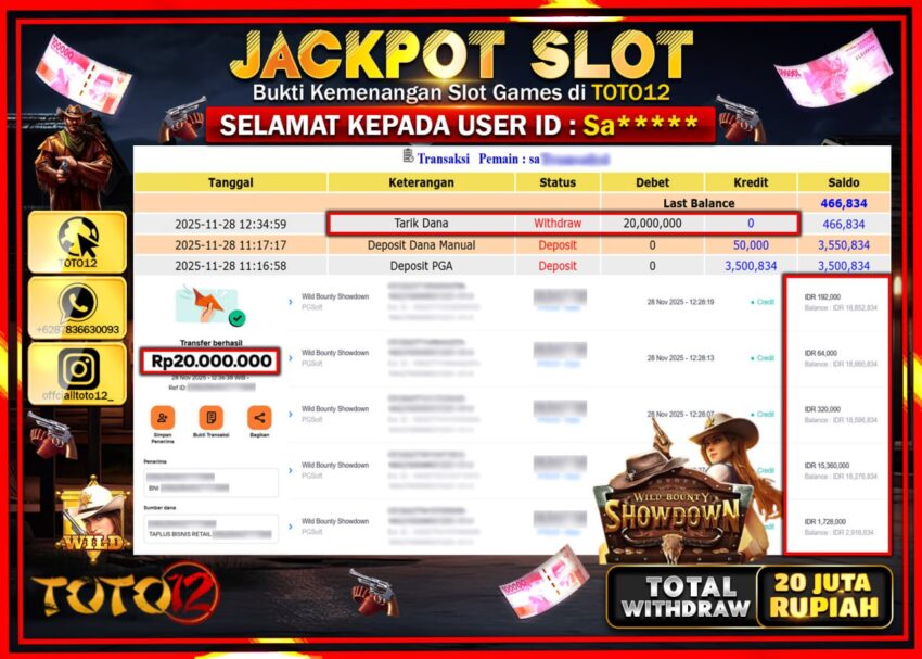 HANYA DI TOTO12 JP PASTI DI BAYAR LUNAS DAN CEPAT!!!!!! JACKPOT SLOT GAME (WILD BOUNTY SHOWDOWN) Rp.20.000.000 !!!!