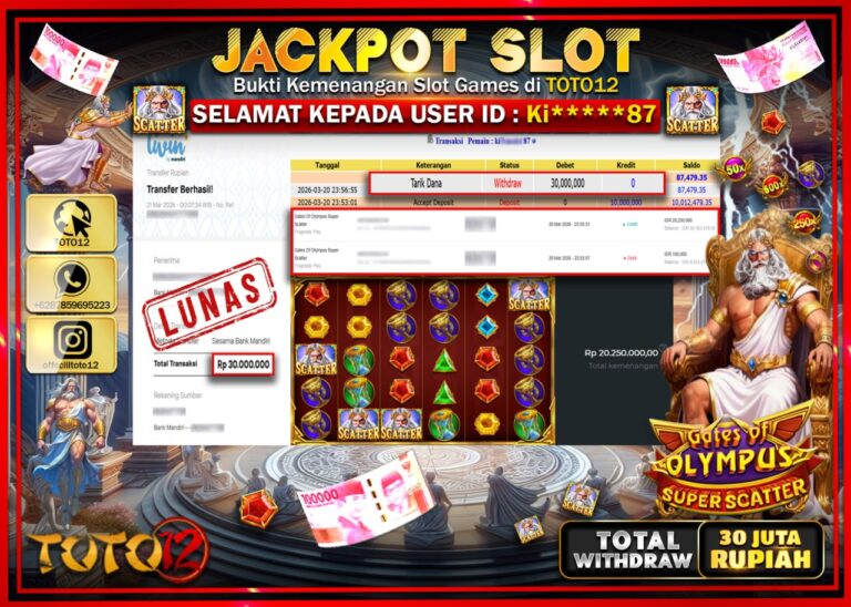 HANYA DI TOTO12 JP PASTI DI BAYAR LUNAS DAN CEPAT!!!!!! JACKPOT SLOT GAME (GATES OF OLYMPUS SUPER SCATTER) Rp.30.000.000!!!!