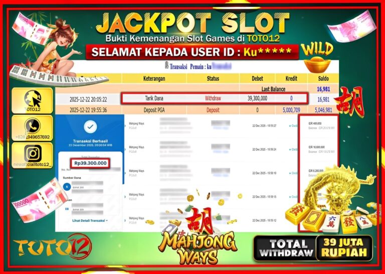 Selamat kepada Member Kami Ku****** Telah Jackpot dan berhasil mendapatkan kemenangan besar pada permainan JACKPOT SLOT GAME (MAHJONG WAYS) Dengan Kemenangan Sebesar Rp.39.300.000 –. Setelah mengisi Fomulir Withdraw dengan Kurang waktu 1-2 Menit Dana sudah kami Trasnfer kepada Pemilik Userid dan dana sudah dapat di cairkan oleh pemenang. Bukti Pembayaran yang TOTO12 berikan merupakan Bukti Pembayaran…