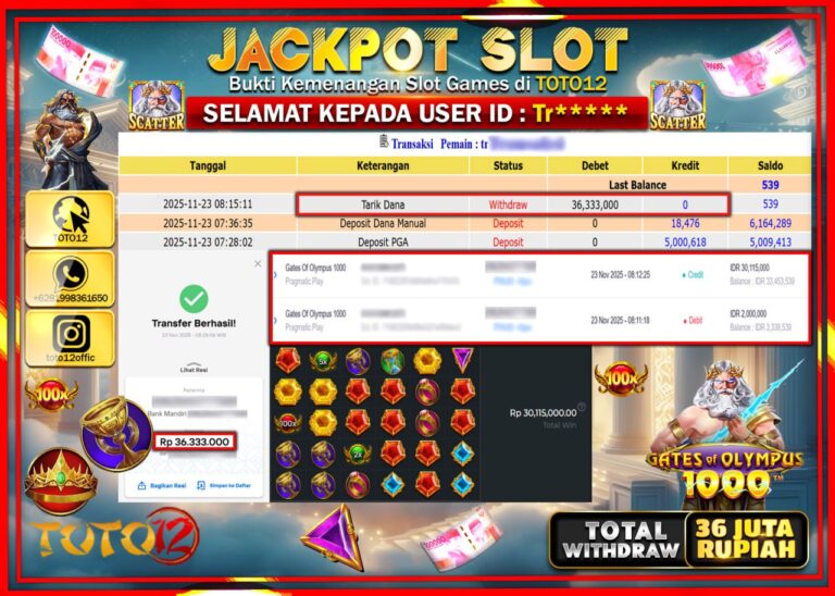 Selamat kepada Member Kami Tr****** Telah Jackpot dan berhasil mendapatkan kemenangan besar pada permainan JACKPOT SLOT GAME (GATES OF OLYMPUS 1000) Dengan Kemenangan Sebesar Rp.36.333.000 –. Setelah mengisi Fomulir Withdraw dengan Kurang waktu 1-2 Menit Dana sudah kami Trasnfer kepada Pemilik Userid dan dana sudah dapat di cairkan oleh pemenang. Bukti Pembayaran yang TOTO12 berikan merupakan…