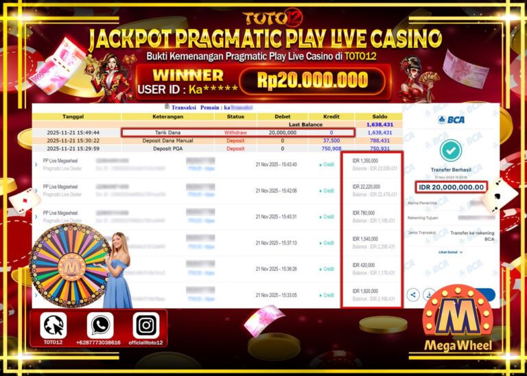 Selamat kepada Member Kami Ka****** Telah Jackpot dan berhasil mendapatkan kemenangan besar pada permainan JACKPOT PRAGMATIC PLAY LIVE CASINO (MEGA WHEEL) Dengan Kemenangan Sebesar Rp.20.000.000 –. Setelah mengisi Fomulir Withdraw dengan Kurang waktu 1-2 Menit Dana sudah kami Trasnfer kepada Pemilik Userid dan dana sudah dapat di cairkan oleh pemenang. Bukti Pembayaran yang TOTO12 berikan merupakan…
