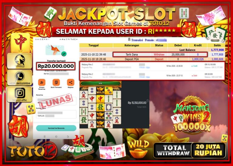 Selamat kepada Member Kami Ri****** Telah Jackpot dan berhasil mendapatkan kemenangan besar pada permainan JACKPOT SLOT GAME (MAHJONG WINS 2) Dengan Kemenangan Sebesar Rp.20.000.000 –. Setelah mengisi Fomulir Withdraw dengan Kurang waktu 1-2 Menit Dana sudah kami Trasnfer kepada Pemilik Userid dan dana sudah dapat di cairkan oleh pemenang. Bukti Pembayaran yang TOTO12 berikan merupakan Bukti…