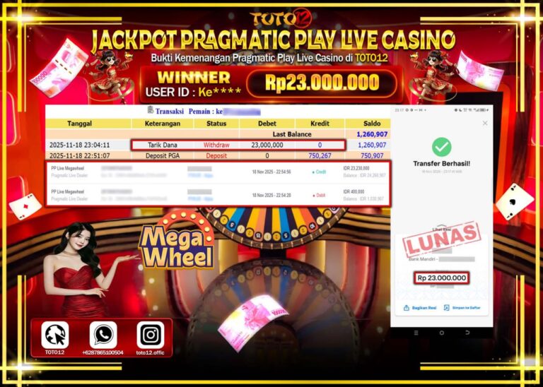 Selamat kepada Member Kami Ke****** Telah Jackpot dan berhasil mendapatkan kemenangan besar pada permainan JACKPOT PRAGMATIC PLAY LIVE CASINO (MEGA WHEEL) Dengan Kemenangan Sebesar Rp.23.000.000 –. Setelah mengisi Fomulir Withdraw dengan Kurang waktu 1-2 Menit Dana sudah kami Trasnfer kepada Pemilik Userid dan dana sudah dapat di cairkan oleh pemenang. Bukti Pembayaran yang TOTO12 berikan merupakan…