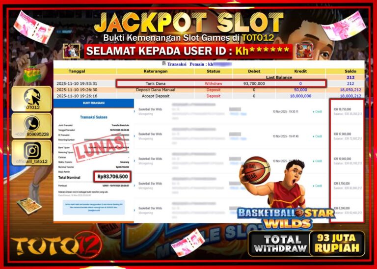 Selamat kepada Member Kami Kh****** Telah Jackpot dan berhasil mendapatkan kemenangan besar pada permainan JACKPOT SLOT GAME (BASKETBALL STAR WILDS) Dengan Kemenangan Sebesar Rp.93.700.000 –. Setelah mengisi Fomulir Withdraw dengan Kurang waktu 1-2 Menit Dana sudah kami Trasnfer kepada Pemilik Userid dan dana sudah dapat di cairkan oleh pemenang. Bukti Pembayaran yang TOTO12 berikan merupakan Bukti…