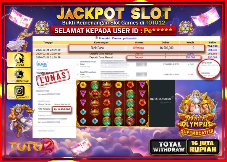 Selamat kepada Member Kami Pe***** Telah Jackpot dan berhasil mendapatkan kemenangan besar pada permainan JACKPOT SLOT GAME (GATES OF OLYMPUS SUPER SCATTER) Dengan Kemenangan Sebesar Rp.16.500.000–. Setelah mengisi Fomulir Withdraw dengan Kurang waktu 1-2 Menit Dana sudah kami Trasnfer kepada Pemilik Userid dan dana sudah dapat di cairkan oleh pemenang. Bukti Pembayaran yang TOTO12 berikan merupakan…