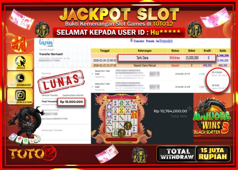 Selamat kepada Member Kami Hu***** Telah Jackpot dan berhasil mendapatkan kemenangan besar pada permainan JACKPOT SLOT GAME (MAHJONG WINS 3 BLACK SCATTER) Dengan Kemenangan Sebesar Rp.15.000.000–. Setelah mengisi Fomulir Withdraw dengan Kurang waktu 1-2 Menit Dana sudah kami Trasnfer kepada Pemilik Userid dan dana sudah dapat di cairkan oleh pemenang. Bukti Pembayaran yang TOTO12 berikan merupakan…