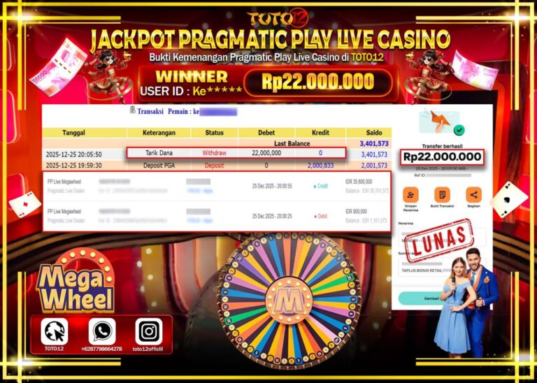 Selamat kepada Member Kami Ke****** Telah Jackpot dan berhasil mendapatkan kemenangan besar pada permainan JACKPOT PRAGMATIC PLAY LIVE CASINO (MEGA WHEEL) Dengan Kemenangan Sebesar Rp.22.000.000 –. Setelah mengisi Fomulir Withdraw dengan Kurang waktu 1-2 Menit Dana sudah kami Trasnfer kepada Pemilik Userid dan dana sudah dapat di cairkan oleh pemenang. Bukti Pembayaran yang TOTO12 berikan merupakan…