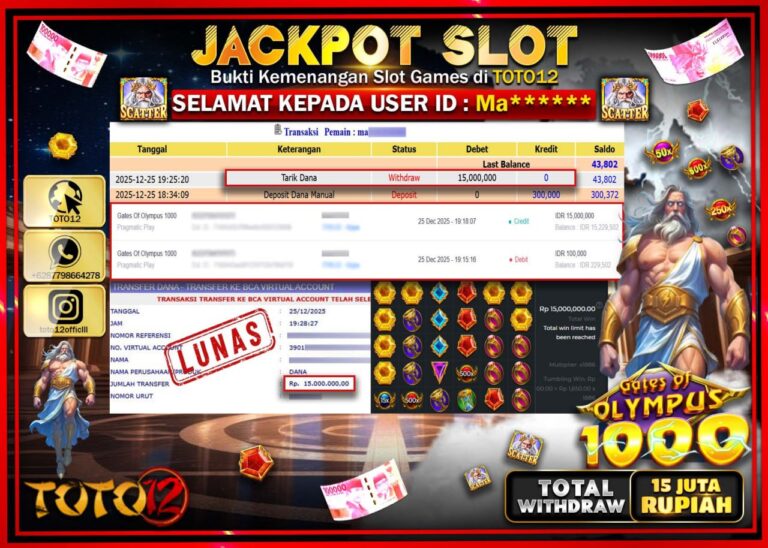 Selamat kepada Member Kami Ma****** Telah Jackpot dan berhasil mendapatkan kemenangan besar pada permainan JACKPOT SLOT GAME (GATES OF OLYMPUS 1000) Dengan Kemenangan Sebesar Rp.15.000.000 –. Setelah mengisi Fomulir Withdraw dengan Kurang waktu 1-2 Menit Dana sudah kami Trasnfer kepada Pemilik Userid dan dana sudah dapat di cairkan oleh pemenang. Bukti Pembayaran yang TOTO12 berikan merupakan…