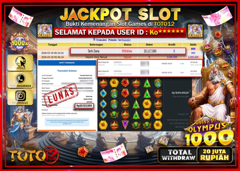 Selamat kepada Member Kami Ko**** Telah Jackpot dan berhasil mendapatkan kemenangan besar pada permainan JACKPOT SLOT GAME (GATES OF OLYMPUS 1000) Dengan Kemenangan Sebesar Rp.20.117.000–. Setelah mengisi Fomulir Withdraw dengan Kurang waktu 1-2 Menit Dana sudah kami Trasnfer kepada Pemilik Userid dan dana sudah dapat di cairkan oleh pemenang. Bukti Pembayaran yang TOTO12 berikan merupakan Bukti…