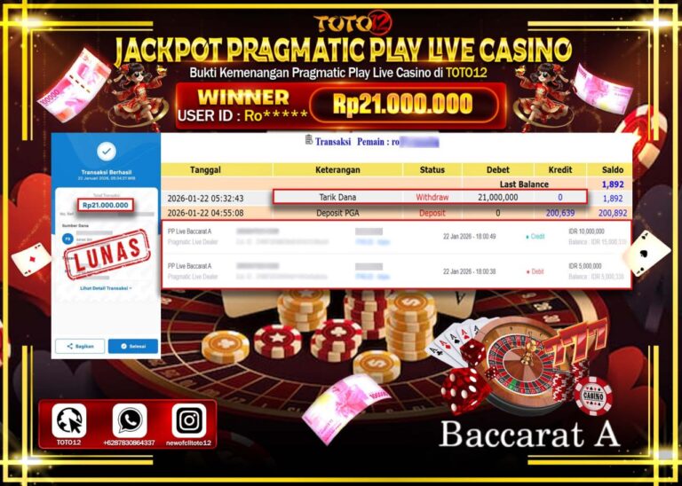 Selamat kepada Member Kami Ro****** Telah Jackpot dan berhasil mendapatkan kemenangan besar pada permainan JACKPOT PRAGMATIC PLAY LIVE CASINO (LIVE BACCARAT) Dengan Kemenangan Sebesar Rp.21.000.000 –. Setelah mengisi Fomulir Withdraw dengan Kurang waktu 1-2 Menit Dana sudah kami Trasnfer kepada Pemilik Userid dan dana sudah dapat di cairkan oleh pemenang. Bukti Pembayaran yang TOTO12 berikan merupakan…