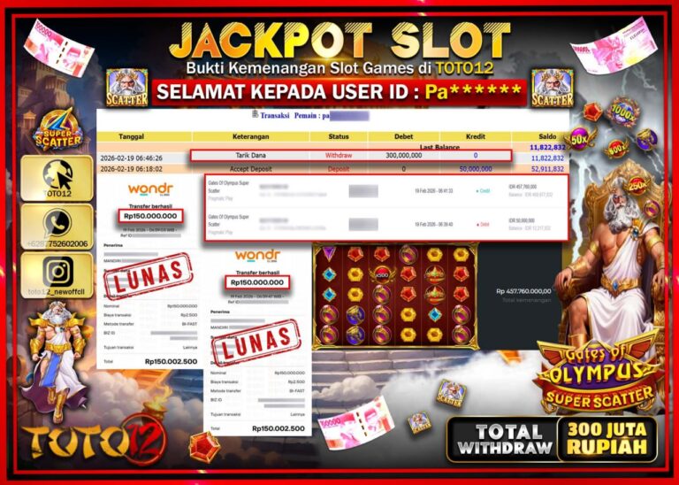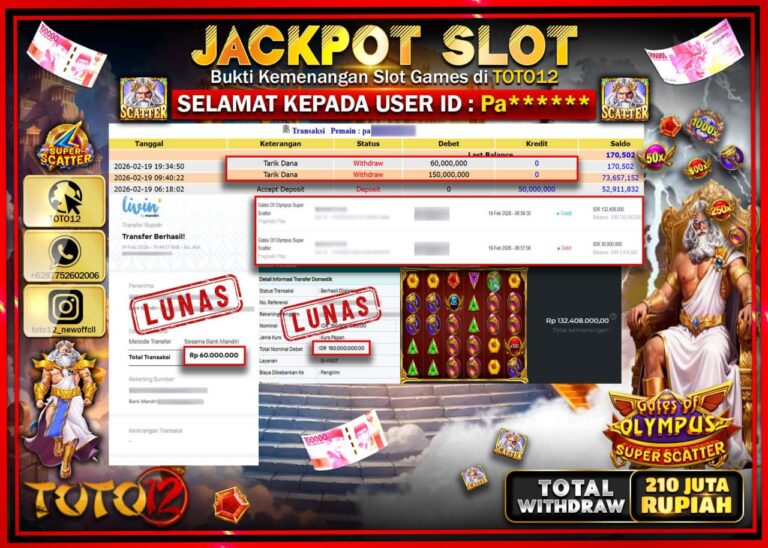 Selamat kepada Member Kami PA***** Telah Jackpot dan berhasil mendapatkan kemenangan besar pada permainan JACKPOT SLOT GAME (GATES OF OLYMPUS SUPER SCATTER) Dengan Kemenangan Sebesar Rp.210.000.000–. Setelah mengisi Fomulir Withdraw dengan Kurang waktu 1-2 Menit Dana sudah kami Trasnfer kepada Pemilik Userid dan dana sudah dapat di cairkan oleh pemenang. Bukti Pembayaran yang TOTO12 berikan merupakan…