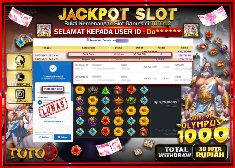 Selamat kepada Member Kami Da****** Telah Jackpot dan berhasil mendapatkan kemenangan besar pada permainan JACKPOT SLOT GAME (GATES OF OLYMPUS 1000) Dengan Kemenangan Sebesar Rp.30.000.000 –. Setelah mengisi Fomulir Withdraw dengan Kurang waktu 1-2 Menit Dana sudah kami Trasnfer kepada Pemilik Userid dan dana sudah dapat di cairkan oleh pemenang. Bukti Pembayaran yang TOTO12 berikan merupakan…