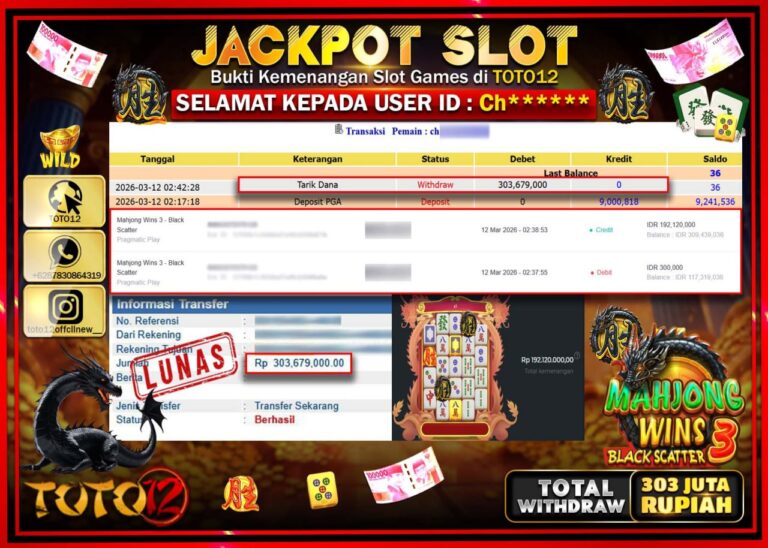 Selamat kepada Member Kami St****** Telah Jackpot dan berhasil mendapatkan kemenangan besar pada permainan JACKPOT SLOT GAME (MAHJONG WAYS) Dengan Kemenangan Sebesar Rp.19.000.000–. Setelah mengisi Fomulir Withdraw dengan Kurang waktu 1-2 Menit Dana sudah kami Trasnfer kepada Pemilik Userid dan dana sudah dapat di cairkan oleh pemenang. Bukti Pembayaran yang TOTO12 berikan merupakan Bukti Pembayaran yang SAH…