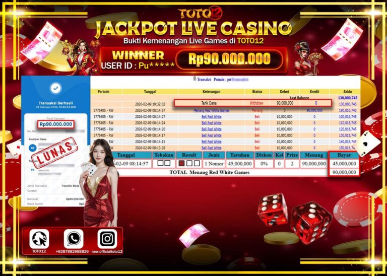 HANYA DI TOTO12 JP PASTI DI BAYAR LUNAS DAN CEPAT!!!!!! JACKPOT LIVE GAME CASINO (RED WHITE) Rp.90.0000.000!!!!