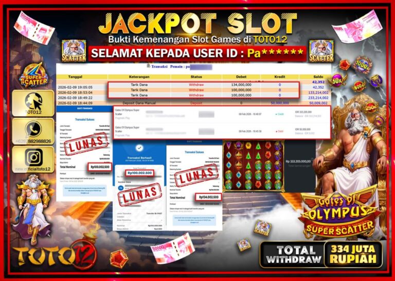 Selamat kepada Member Kami Pa***** Telah Jackpot dan berhasil mendapatkan kemenangan besar pada permainan JACKPOT SLOT GAME (GATES OF OLYMPUS SUPER SCATTER) Dengan Kemenangan Sebesar Rp.334.000.000–. Setelah mengisi Fomulir Withdraw dengan Kurang waktu 1-2 Menit Dana sudah kami Trasnfer kepada Pemilik Userid dan dana sudah dapat di cairkan oleh pemenang. Bukti Pembayaran yang TOTO12 berikan merupakan…