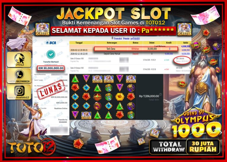 Selamat kepada Member Kami Pa****** Telah Jackpot dan berhasil mendapatkan kemenangan besar pada permainan JACKPOT SLOT GAME (GATES OF OLYMPUS 1000) Dengan Kemenangan Sebesar Rp.30.000.000–. Setelah mengisi Fomulir Withdraw dengan Kurang waktu 1-2 Menit Dana sudah kami Trasnfer kepada Pemilik Userid dan dana sudah dapat di cairkan oleh pemenang. Bukti Pembayaran yang TOTO12 berikan merupakan Bukti…