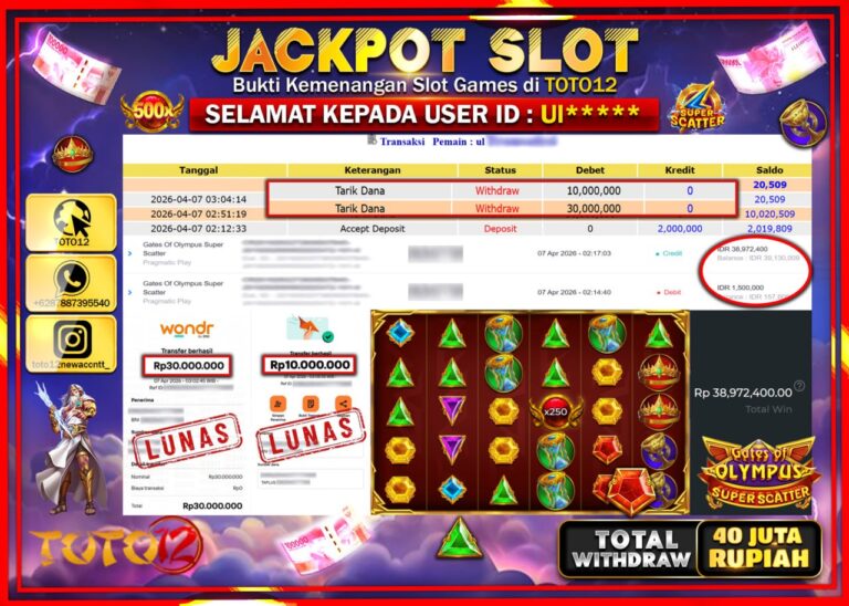 Selamat kepada Member Kami Ul***** Telah Jackpot dan berhasil mendapatkan kemenangan besar pada permainan JACKPOT SLOT GAME  (GATES OF OLYMPUS SUPER SCATTER)  Dengan Kemenangan Sebesar Rp.40.000.000–. Setelah mengisi Fomulir Withdraw dengan Kurang waktu 1-2 Menit Dana sudah kami Trasnfer kepada Pemilik Userid dan dana sudah dapat di cairkan oleh pemenang. Bukti Pembayaran yang TOTO12 berikan merupakan…