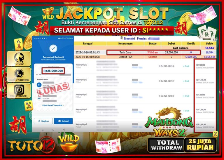 Selamat kepada Member Kami Si****** Telah Jackpot dan berhasil mendapatkan kemenangan besar pada permainan JACKPOT SLOT GAME (MAHJONG WAYS 2) Dengan Kemenangan Sebesar Rp.25.000.000 –. Setelah mengisi Fomulir Withdraw dengan Kurang waktu 1-2 Menit Dana sudah kami Trasnfer kepada Pemilik Userid dan dana sudah dapat di cairkan oleh pemenang. Bukti Pembayaran yang TOTO12 berikan merupakan Bukti…