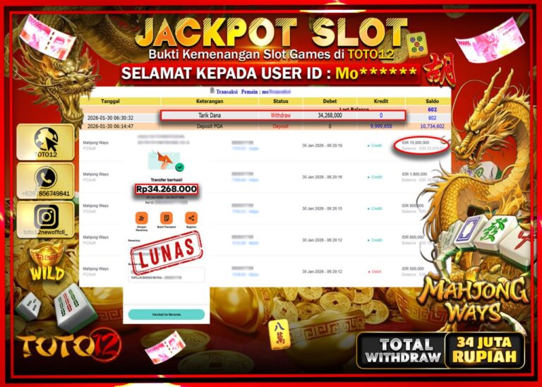 Selamat kepada Member Kami Mo****** Telah Jackpot dan berhasil mendapatkan kemenangan besar pada permainan JACKPOT SLOT GAME (MAHJONG WAYS) Dengan Kemenangan Sebesar Rp.24.268.000 –. Setelah mengisi Fomulir Withdraw dengan Kurang waktu 1-2 Menit Dana sudah kami Trasnfer kepada Pemilik Userid dan dana sudah dapat di cairkan oleh pemenang. Bukti Pembayaran yang TOTO12 berikan merupakan Bukti Pembayaran…